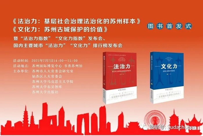 《法治力——基层社会治理法治化的苏州样本》《文化力——苏州古城保护的价值》图书首发式 暨“法治力指数”“文化力指数”发布会、国内主要城市“法治力”“文化力”排行榜发布会