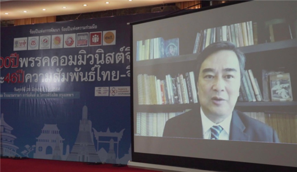 泰国前总理、民主党前党主席阿披实·威差奇瓦在视频发言中指出,中国在中国共产党的领导下,在经济社会发展等各领域取得巨大成就。中国脱贫攻坚取得全面胜利,在电子商务、科技和人工智能方面已经领先全球,相信未来中国能够长期保持社会和谐稳定,最终实现人类命运共同体的目标。他对中国共产党建党100周年表示祝贺,表示中国共产党是目前世界上最大的政党,也是真正为人民服务的政党,“一带一路”倡议助力全球发展,为全球和平与发展事业作出重要贡献。