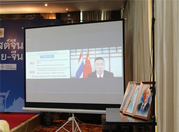 中国驻泰国大使馆临时代办杨欣在视频演讲中回顾了中国共产党诞生背景和百年伟大历程。他表示,100年来,中国共产党团结带领全国各族人民,经过艰辛探索,付出巨大牺牲,从根本上改变了中国人民的命运,迎来了中华民族从站起来、富起来到强起来的伟大飞跃。杨欣表示,中泰建交46年来,双方政治互信不断加深,经贸合作日益拓展,人文交流更加密切,全方位合作取得丰硕成果。中泰两国不断深化“一带一路”合作,中国粤港澳大湾区与泰国东部经济走廊的对接不仅推动中泰两国“五通”建设,而且带动区域繁荣发展。中方将以中国共产党百年华诞为契机,同泰方深化交流合作,推动中泰全面战略合作伙伴关系迈上新台阶。