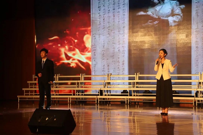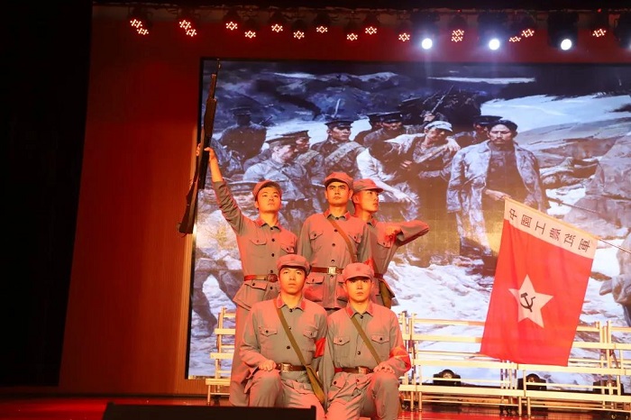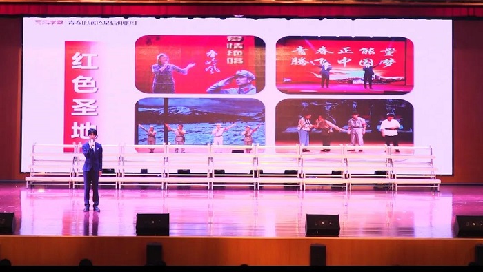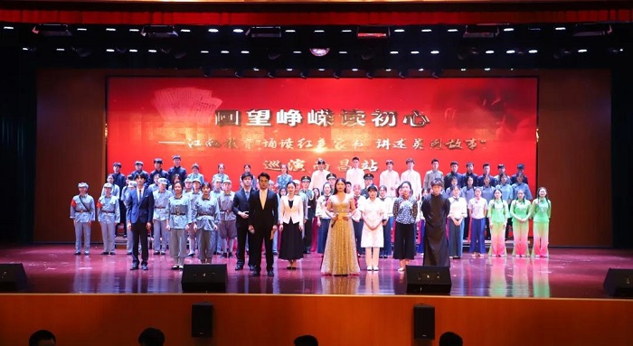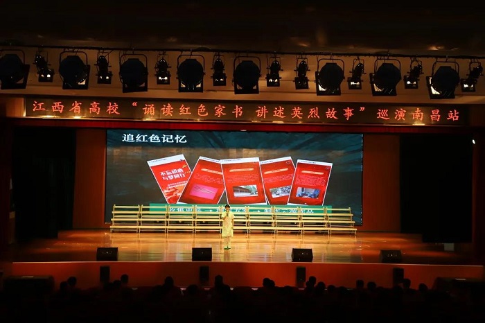 近日,由江西省委教育工委、省教育厅主办,江西制造职业技术学院和江西高校出版社共同承办的“回望峥嵘读初心——江西高校‘诵读红色家书 讲述英烈故事’巡演”南昌站第三站在江西制造职业技术学院举行。江西制造职业技术学院党委书记聂林水、院长蔡冬根以及所有在家校领导,江西高校出版社副社长吴子明,与江西制造职业技术学院师生共计900余人观看演出。