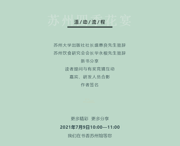 活动预告|四季花香 读书品味:苏州大学出版社《苏州四季花宴》特色美食分享会