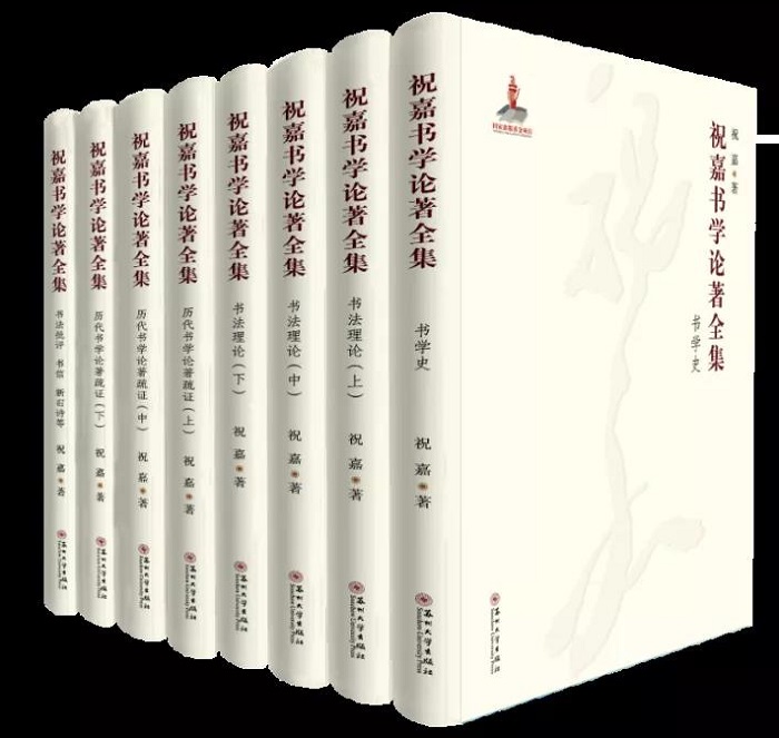 《祝嘉书学论著全集》包括“书学史”1卷、“书法理论”3卷、“历代书学论著疏证”3卷、“书法批评、书信、新旧诗等”1卷。书中除收录祝嘉已出版的《书学》《书学史》《愚盦书话》《愚盦碑话》《书学新论》《书学论集》等著作外,还收入大量由其手稿整理出的遗著、遗文,以及200多首诗词作品、200多封与海内外名家往来的书信,其中不乏珍贵、珍稀资料。同时,八卷以彩插形式刊出祝嘉书法作品等100多件。据此可以全面了解祝嘉对于书法史、书学思想史、书法创作、书法教育等由技法到哲学的通透思考。该书不仅是研究祝嘉个人学术与创作的权威资料,也是研究中国书法尤其是20世纪中国书法的珍贵文献。