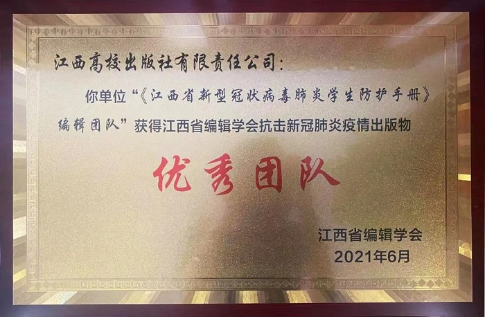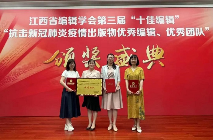 7月8日下午,第三届江西省编辑学会“十佳编辑”暨“抗击新冠肺炎疫情出版物优秀编辑、优秀团队”表彰大会在中文传媒举行。江西高校出版社高教分社社长胡李钦荣获“十佳编辑”称号;江西高校出版社社科图书出版中心主任、客家文化分社社长邓玉琼,江西高校出版社项目运营中心副主任刘建梅荣获“抗击新冠肺炎疫情出版物优秀编辑”称号,《江西省新型冠状病毒肺炎学生防护手册》编辑团队荣获“抗击新冠肺炎疫情出版物优秀团队”。