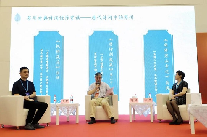 2021年7月9日上午,由南京师范大学出版社主办的唐宋诗词与中华文化经典教育阅读专题讲座在第21届江苏书展长三角展区江苏馆隆重举行。讲座邀请南京师范大学文学院院长、博士生导师高峰教授作为主讲嘉宾,与广大读者共同赏读苏州古典诗词,分享《唐诗导读》《宋词导读》的创作理念,解读《中小学阅读指导目录》文学类书目,指导新高考文学阅读实战经验。南京师范大学出版社总编辑徐蕾,党委副书记、副社长张鹏参加讲座,讲座由张鹏主持。