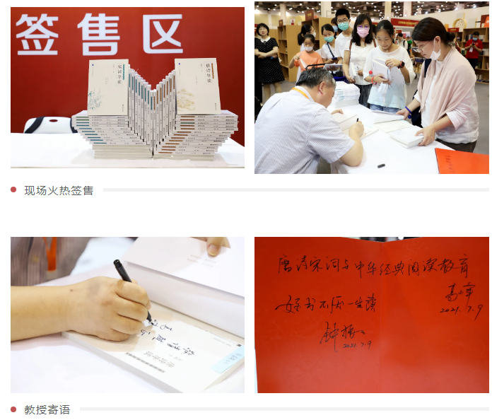 活动最后,高峰教授还进行了《唐诗导读》和《宋词导读》的现场签售。全程观摩讲座活动的南京师范大学文学院钟振振教授也即兴题词“好书不厌一生读”,为本次活动画上圆满的句号。