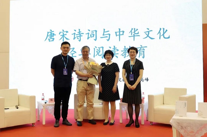 在谈及由高峰教授编著,南京师范大学出版社出版发行的中华文化经典通识课《唐诗导读》和《宋词导读》时,他指出,南京师范大学文学院与南京师范大学出版社签订了关于“中华文化经典通识课”系列丛书编撰的协议,就是希望紧扣“经典与文化”,结合特定时代的社会文化细致解析中华文化的丰富内涵、艺术技法,优美生动地诠释中华优秀传统文化经典,与“知识链接”“阅读思考”有机结合,拓展学生的阅读视野,提高理解分析诗词的综合能力。