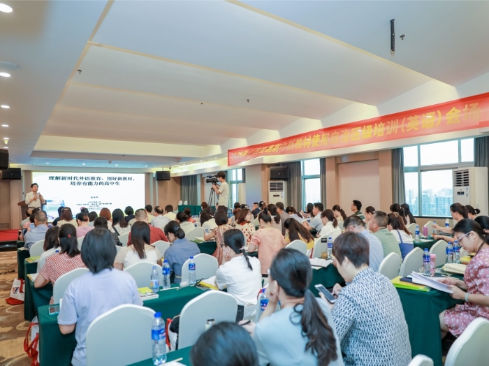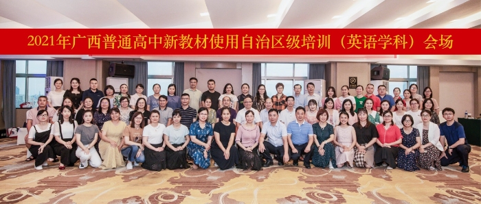根据教育部《关于做好普通高中新课程新教材实施工作的指导意见》和《新修订普通高中课程方案和课程标准培训工作方案》的要求,为提高广西壮族自治区普通高中学科教师使用新教材、实施课堂教学的能力,更好地适应普通高中新课程改革,2021年7月13-14日,由广西壮族自治区教育厅主办、广西教育研究院承办、外语教学与研究出版社(以下简称“外研社”)协办的“2021年普通高中新教材使用自治区级培训(英语学科)”在南宁成功举办。首届自治区普通高中课程改革外语教学指导专委会委员、广西教育研究院英语学科中心组成员、以及来自桂林、贵港、贺州、百色、河池、钦州和防城港七个地市的教研员及骨干教师共60余位参加了本次培训。