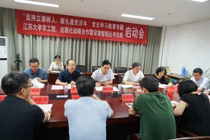 6月25日下午,为持续推进党史学习教育走深、走实、走出成效, 江苏大学出版社与农业工程学院在耒耜大楼1026会议室召开“坚持立德树人,献礼建党百年”党史学习教育专题会暨出版社与农业工程学院战略合作、“设施农业智能化丛书”出版启动会。江苏大学副校长全力出席并讲话,江苏大学出版社直属党支部全体支委会成员、江苏大学农业工程学院党委领导班子、丛书作者等参加启动会。