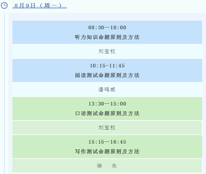 本次工作坊的目的是系统性地介绍语言测评的基本理论,听、说、读、写技能的命题原则,以及其相关数据的处理方法,帮助与会者研制出质量上乘的语言测试题目。工作坊结束后颁发电子版学时证书。