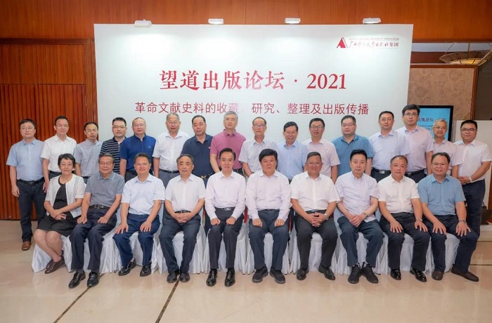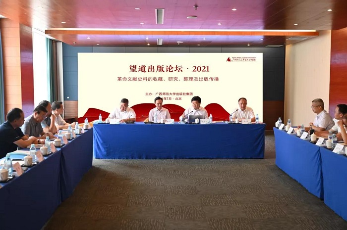 2021年7月24日,为庆祝中国共产党成立100周年,深入学习贯彻习近平总书记在庆祝中国共产党成立100周年大会上的重要讲话精神,广西师范大学出版社集团有限公司在北京举办“望道出版论坛·2021”。中央马克思主义理论研究和建设工程咨询委员、原中央党史研究室常务副主任、中国中共党史学会原常务副会长龙新民,韬奋基金会理事长、中国出版协会副理事长聂震宁,全国政协委员、中国政策科学研究会副会长、中国社会科学院马克思主义研究院原党委书记、院长邓纯东,原中共中央文献研究室副秘书长、中央文献出版社原社长郑德兴,以及来自国内革命文献史料研究及出版传播领域的专家学者40余人与会,共同探讨革命文献史料的收藏、研究、整理及传播出版。