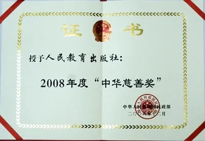 这也是人民教育出版社第二次获得“中华慈善奖”奖项,此前,人民教育出版社因在“5·12”四川汶川特大地震抗灾救灾过程中勇于承担社会责任的突出贡献,获得2008年度中华慈善奖集体最高荣誉──“最具爱心内资企业”,是全国唯一一家获此殊荣的出版社。