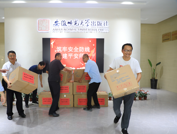 安徽师范大学出版社一直探索服务学校工作的新路径、新方法,不仅共同携手助力学校学术成果的展示与转化,更是在扎实推进“我为师生办实事”活动方面不断努力,切实为学校师生做好服务。社长张奇才表示,为协助学校统筹推进常态化疫情防控和迎新工作,安徽师范大学出版社有义务和责任为学校尽微薄之力,支援学校疫情防控工作,为学校师生提供力所能及的帮助。希望能够为学校的学生们增加一份防护,从而履行出版社的一份责任,齐心协力确保学校开学安全。