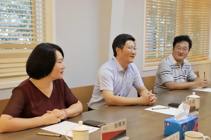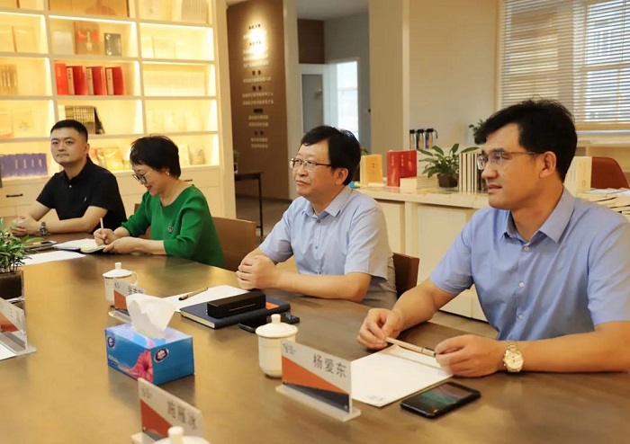 张志刚社长对王建校长一行来访表示热烈欢迎,重点介绍了南京师范大学出版社的组织架构、企业文化环境、硬件设施、融合发展以及未来规划。他表示,出版社要凝心聚力,规划好“十四五”战略布局,进一步完善体制机制,激发员工向上的斗志。同时把握好出版业数字化转型机遇,打造精品融合发展项目,创新营销理念与模式,共同推进出版社发展迈向新台阶。