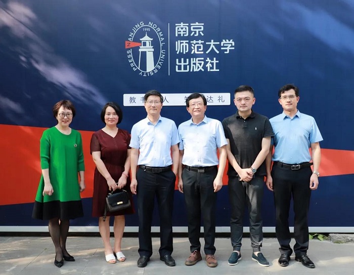 2021年9月9日下午,江苏第二师范学院校长王建一行来到南京师范大学出版社指导交流。南京师范大学出版社党委书记、董事长、社长张志刚,总编辑徐蕾,党委副书记、副社长张鹏,副社长杨爱东参加了交流会。