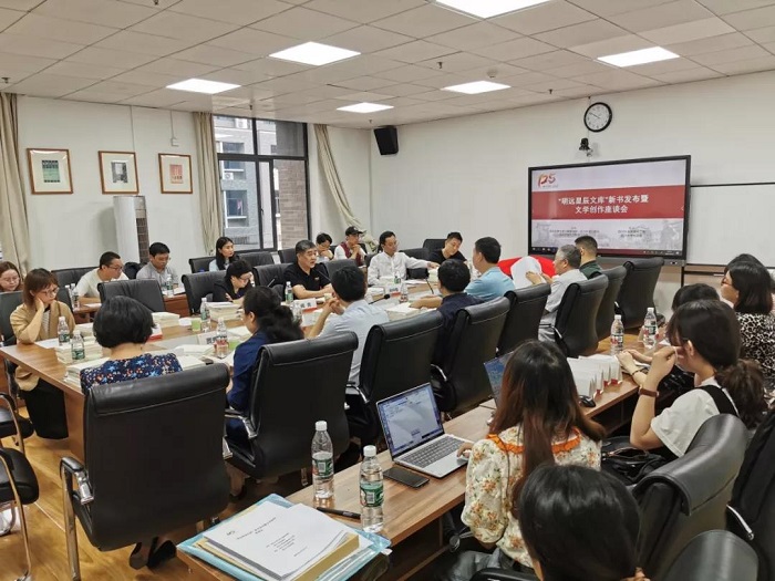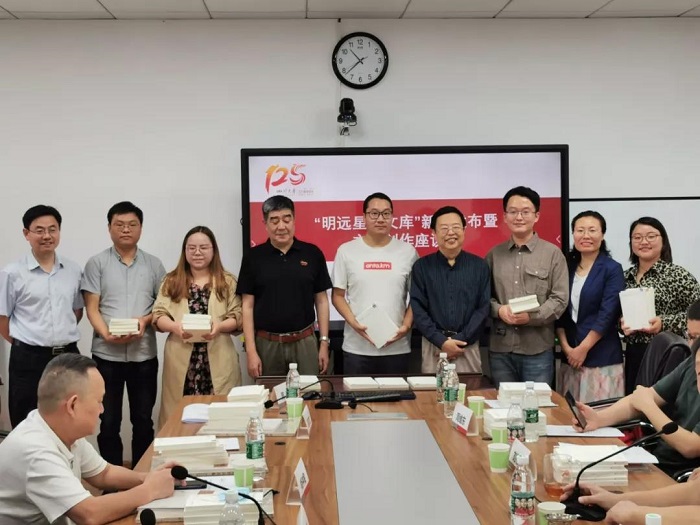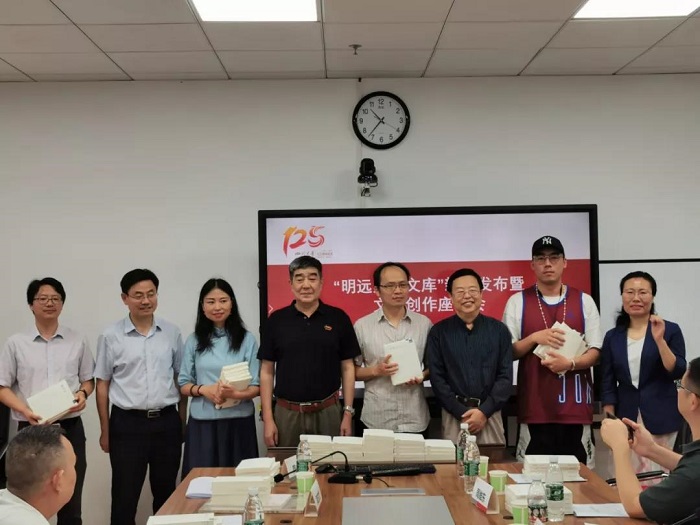 会上隆重发布了“明远星辰文库”首批新书,包括何竞《激荡1911》(长篇小说)、王学东《机器时代的诗歌》(诗歌集)、许淳彦《隐喻集》(诗歌集)、何波宏《潮汐录》(散文集)、宋雨霜《生命的芭茅花》(散文集)5部作品,并举行了向作者赠书仪式。