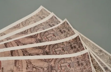 接着,就是漫长的封面选纸过程,为了贴近《渝城图》的气质,我们选择用布。相对而言,布的成本是纸张的数倍。另外,《渝城图》的图案繁复,虽然整个色调偏暗黄,但画面色彩的细节很多,红的砖瓦、褐的墙、青黛的山河,因此,布面并不是我们的最佳选择(一般市面上的布面书籍,封面大多是纯色,通常以烫印点缀)。