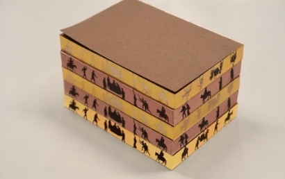 而最大的难题,是《爪牙》会员定制的书口印刷。我们原定的方案是“喷金+图案”,在金边上印刷书吏与差役的剪影,剪影从上下书口分别出发,到中间的县衙汇合。但金属的附着力较差,导致覆盖在上面的印制图案容易掉色。我和技编老师联系全国不同印厂,进行了5次打样实验,均以失败告终。
