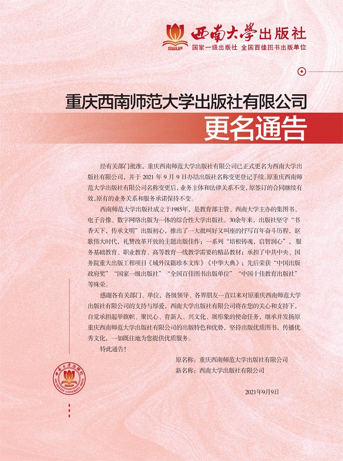 重庆西南师范大学出版社有限公司更名通告 - 出版动态 - 中国高校教材图书网