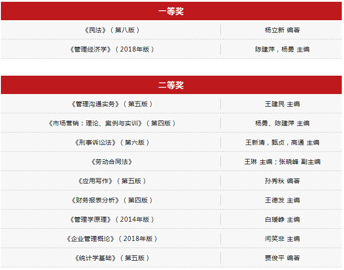 • 工商管理类教材中国人民大学出版社获评4项,其中3项为同类教材中唯一获奖的教材!