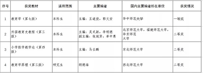 在首届全国教材建设奖的基础教育、高等教育和职业教育奖项中,人教社共有61种教材获得一二等奖。