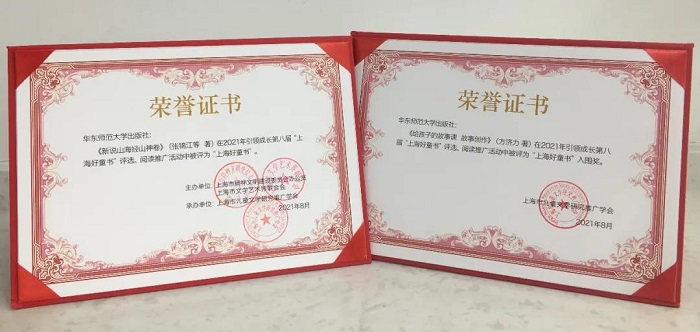 第八届“上海好童书”共收到全国53家出版社自荐童书232种(其中包括港台3家),经过专家评审,评出30种获奖好童书及1种“上海好童书”特别奖。由张锦江主创、主编,华东师范大学出版社出版的《新说山海经·山神卷》获得第八届“上海好童书”(文学类)奖,《给孩子的故事课·故事创作》获得第八届“上海好童书”入围奖。“上海好童书”按内容体裁分为四类,分别是政治思想类(2种)、科学技术类(1种)、绘本类(5种)、文学类(22种),张文宏主编的《病菌简史》获得了“上海好童书”特别奖。