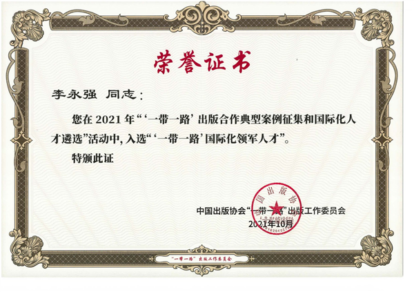 2021年10月15日下午,由中国出版协会、中国出版集团有限公司主办的第二届“一带一路”出版合作经验交流会在四川成都成功举办。来自全国出版发行界的近200名代表围绕“‘一带一路’出版合作新机遇新举措”进行了深入交流和探讨。会上,“一带一路”出版合作典型案例征集和国际化人才遴选活动结果名单同时公布。中国人民大学出版社“意大利中国馆项目”荣获“‘一带一路’出版合作典型案例(海外布局和运营)”奖;李永强社长获得“‘一带一路’国际化领军人才”荣誉称号。
