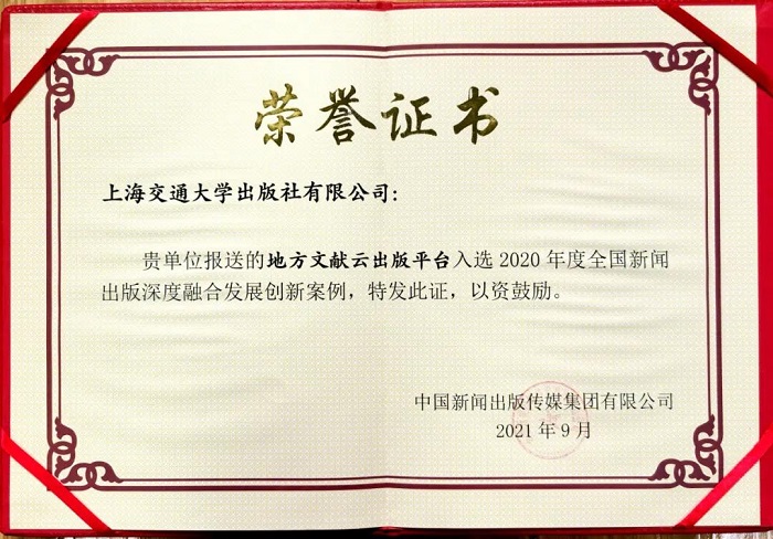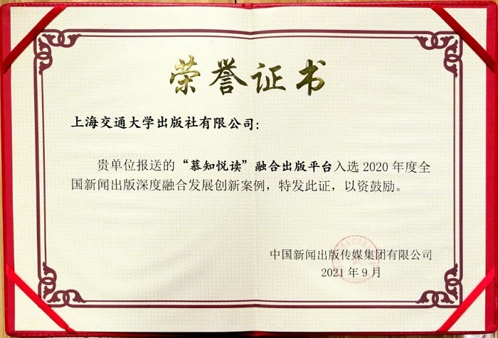 在中国新闻出版传媒集团组织开展的全国新闻出版深度融合发展创新案例征集活动中,上海交通大学出版社的《地方文献云出版平台》《“慕知悦读”融合出版平台》入选。