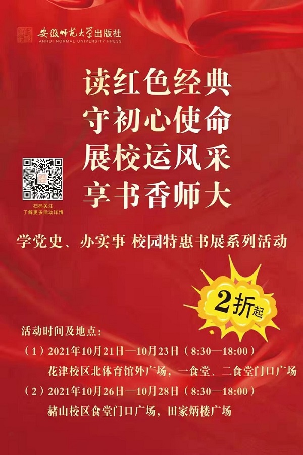 这一校园特惠书展系列活动是安师大出版社为建党百年献礼、深化书香校园建设的切实举措。作为党的意识形态的宣传阵地,出版社将不忘初心,牢记使命,继续为学校文化建设服务,为学校教学科研服务,为地方文化建设服务,为我国出版事业的繁荣发展服务。