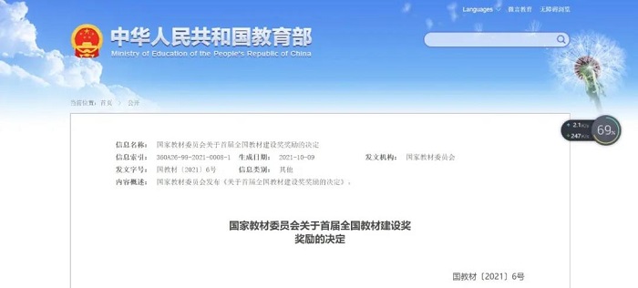 本书还于2021年1月获评陕西省2020年省级优秀教材一等奖。