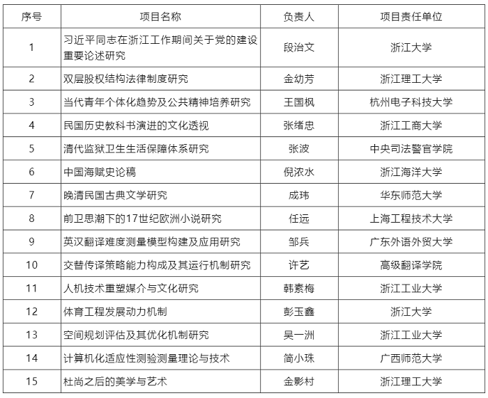 10月27日,全国哲学社会科学办公室正式公布了2021年国家社科基金后期资助项目,共有1124个项目获批立项,经浙江大学出版社推荐申报的项目共有15个获批立项。