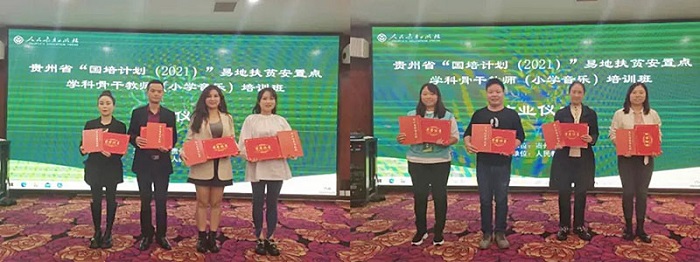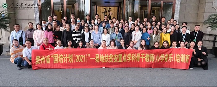 为了进一步巩固脱贫攻坚成果,接续推动脱贫地区发展和乡村全面振兴,贵州省近年来面对全省易地扶贫搬迁安置点义务教育阶段骨干教师开展系列“国培计划”培训。培训着力针对教师的师德师风,对新环境、新岗位的适应,对新课程、新教材、新教法的理解,以及课堂教育教学能力提升等方面开展专项培训,整体提升教师的专业素养和师德师风水平,确保安置点孩子有学上、上好学。其中,小学、初中音乐学科培训任务由人教文化交流中心承担。