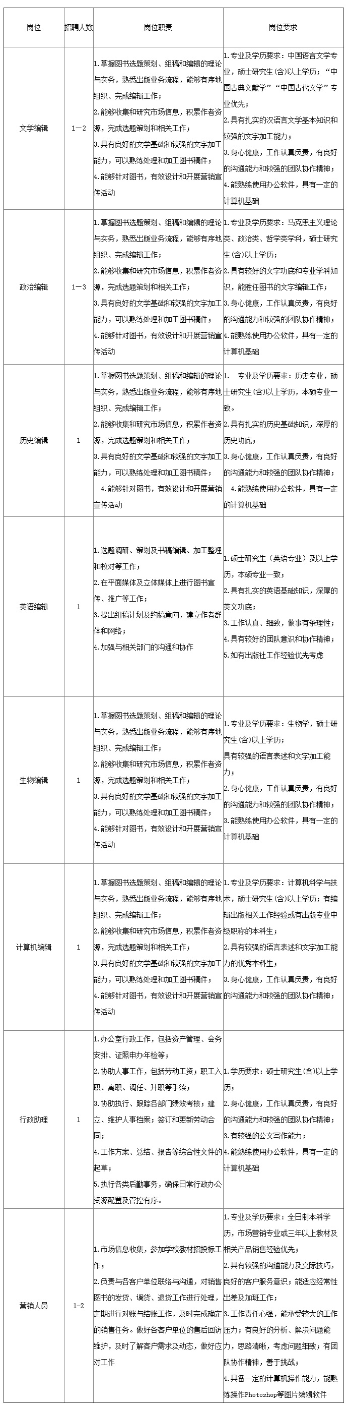 3.性别不限,身体健康,年龄35周岁以下(1986年1月1日以后出生)。中共党员优先,有相关工作经验者或取得出版专业中级及以上职称应聘人员年龄可适当放宽。