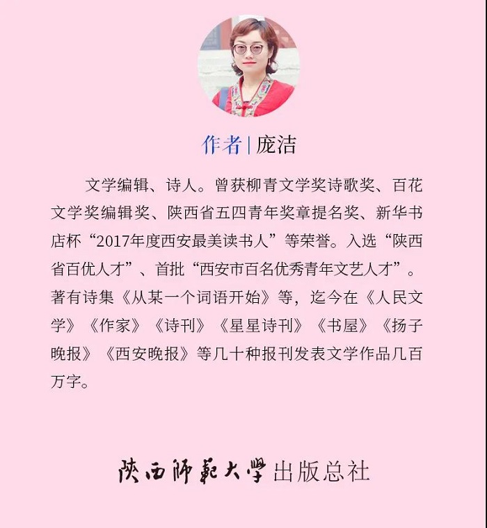 《孤意与深情:<诗经>初见》是庞洁历时数年读《诗经》的心得体悟,该书由陕师大出版总社出版,主要选取了《诗经》中30篇经典,参考历代版本,逐字校对,正本清源,以一个当代女性诗人的独特视角切入对《诗经》的阐释。尤其对《诗经》中的诸多女性形象进行剖析,对历史及性别做了文化的思考,不同于一般学术研究式的刻板解读,而是将典雅博奥的古代典籍与现代人的生活与情感对接,将内心感受和哲思融为一体,探索先民们幽微的生命轨迹,重构了一种现代女性的理想人格与感情观。