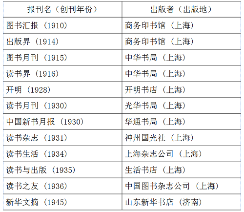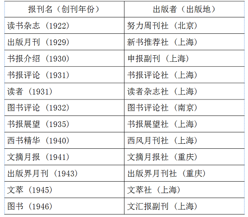 本文则在统计结果的基础上,对读书类报刊的数量、创刊时间、出版地、出版机构及其重要报刊进行了整理研究。