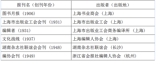 表4为协会出版的重要报刊。出版读书类报刊的协会有上海书业商会、上海市出版业工会、上海编辑人协会、湖南杂志社联谊会、浙江省会报社编辑人协会等。