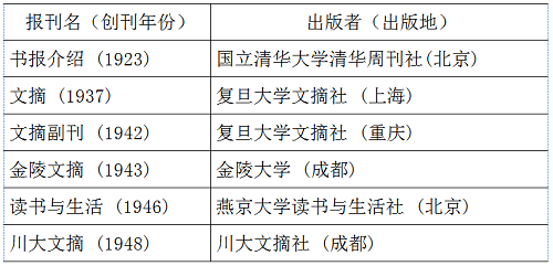 本文选取作为读书类报刊的内容特征有以下特点:(1)对出版的图书进行宣传、推广的书目介绍类;(2)指导读书方法,交流读书心得的读书指导类;(3)对图书进行评论推介的书评类;(4)精选内容供读者阅读的文摘类。此读书类报刊有别于主要研究图书馆学的图书馆学期刊和研究新闻学的新闻学期刊。
