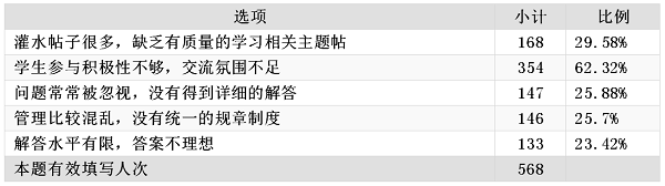 表6 在线讨论存在的不足