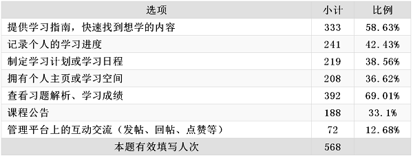 表7 学生需要课程平台提供的管理支持