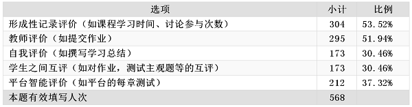 学生对于评价方式的喜好如表10所示。从表10中可以看出,学生对于现有评价方式中的形成性记录评价和教师评价更为青睐,对于平台智能评价有212人(37.32%),表示喜欢,其余两项不太受学生的欢迎。数据表明学生更乐于接受来自平台和教师的评价,而不太乐于进行自我评价和学生之间的互评。