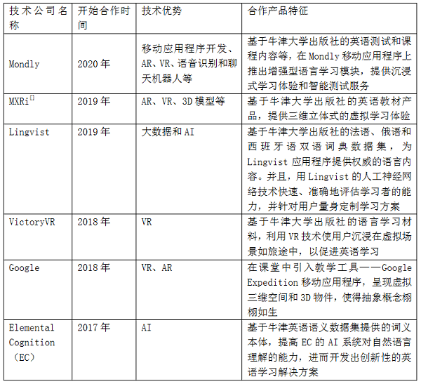 表2 牛津大学出版社近年来合作的部分技术公司情况