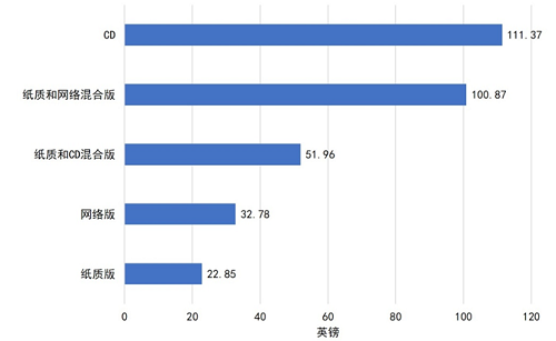 图2 牛津大学出版社2020年向国际中小学学校提供的不同媒介形态教育出版物平均订阅价格