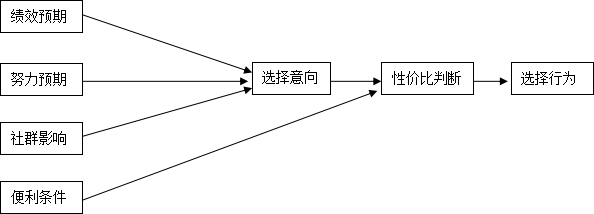 便利条件是指使用个体认为组织内部和组织技术基础设施支持新系统使用的程度。它没有在TAM和TAM2中提及,但已应用于其他一些模型(如计划行为理论等)。该因素对预期使用行为意向没有明显的直接影响,对使用行为的影响受年龄和经验等因素的控制。