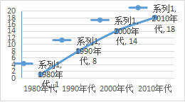 从图 1 可以看到,4个10年中数学教育丛书的出版数量总体呈上升趋势,这表明中国数学教育研究的成果及记录从改革开放以来是稳健上升的。