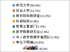 4. 主编单位分布比较宽泛,包括师范大学、综合大学、教科院(教研室)、科研院所、教育主管部门、数学教育研究会、华人数学教育研究团队等。而且近一半数量(套)的丛书主编来自师范大学,数学教育丛书编写的专业性得以体现。但跨单位之间的合作主编还不够明显,尤其是重要机构之间的合作还比较少。