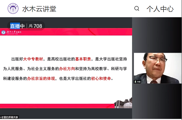 湖南大学出版社董事长雷鸣做题为《中小型大学社特色教材建设的实践与思考》的发言,以湖南大学出版社设计艺术教材图书板块为例,汇报对特色教材建设的思考体会。他首先介绍了湖南大学出版社的基本情况,教材图书体系以大中专教材为主,以学术著作和一般读物为两翼,层次错落、门类齐全,其中设计艺术教材图书板块开发建设持续时间最长、产品规模最大、产品形态最丰富。具体介绍设计艺术教材开发建设的规模与特色,03年以来,共出版300余种,其中大学教材200余种,具有层次分明、品种齐全、质量过硬的特色。他总结设计艺术特色教材建设的主要做法,一是,依托学校特色资源开发教材;二是,顺应学科专业变化拓展教材开发方向;三是,形成以教材为核心的相关图书板块。他谈到教材开发建设的思考与体会,提出教材开发要顺势而为,教材板块建设要以点带面,教材质量保障是关键,人才队伍建设是保障四点意见。