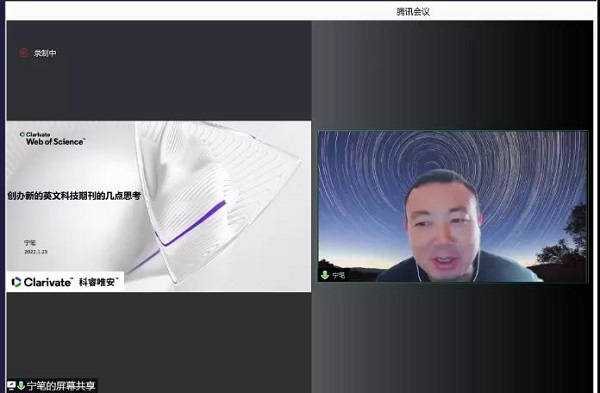 宁笔就《创办新的英文科技期刊的几点思考》进行了分享,他对新刊创刊过程中会遇到的多个问题进行了深入浅出的分析讲解,对科睿唯安数据库的申请进行了简单介绍,对编委团队和出版从业人员均有较大启发。