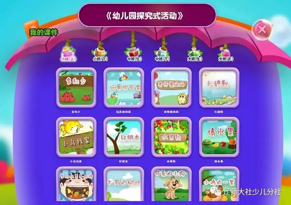 辽宁师范大学出版社《幼教学堂》APP是配套《幼儿园探究式活动》系列丛书免费使用的多媒体教学课件,打造“图片+声音+动画+游戏+互动”五位一体的活动呈现。