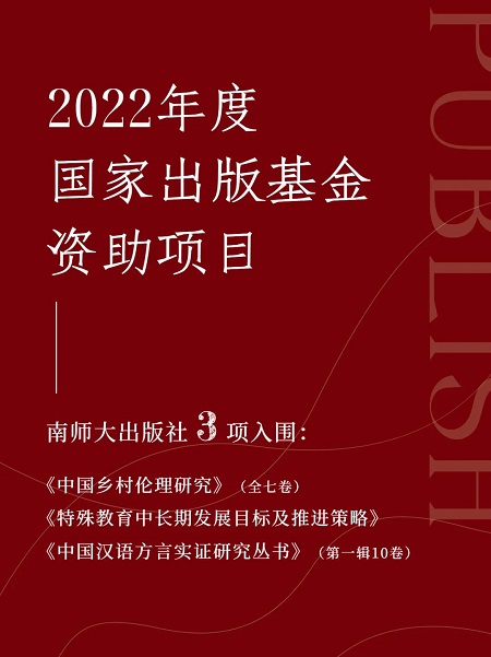 3月7日,经国家出版基金专家评审并报国家出版基金管理委员会批准,国家出版基金规划管理办公室对2022年度国家出版基金资助项目评审结果予以公示。南京师范大学出版社组织策划申报的《中国乡村伦理研究》(全七卷)、《特殊教育中长期发展目标及推进策略》、《中国汉语方言实证研究丛书》(第一辑10卷)等3种项目从众多申报项目中脱颖而出,成功入选。
