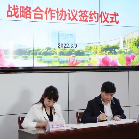 厦门大学出版社洪秋霞书记和厦门理工学院朱文章校长分别代表双方签订战略合作协议。双方就学科建设、教材立项规划、数字课程开发、各级别的优秀教材评审、教材选用采购等方面展开战略性合作。
