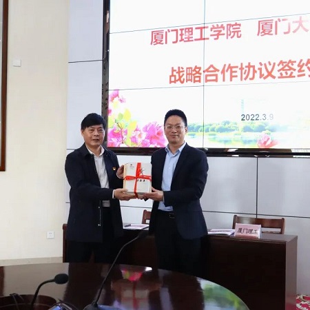 厦门大学出版社总编辑施高翔代表出版社向厦门理工学院赠送纪念品。双方参会人员就教材与专著建设等方面进行深入探讨,充分交换意见,并建立了联络人机制,为厦门理工学院促进先进教学科研成果转化提供便利。